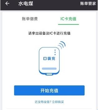2、点击【开始充值】,开启IC卡设备的蓝牙功能,并正确插入IC卡。