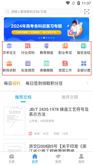 1、打开道客阅读App,在主页可以看到这里有各种文档供你阅读。