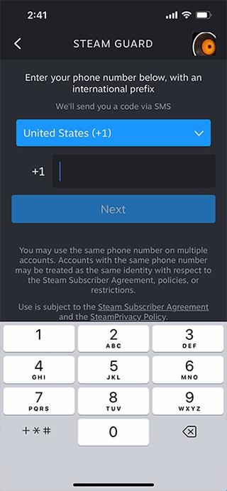 2、接下来,您将输入一个电话号码,我们可以通过短信确认该电话号码。如果您无法访问您的 Steam帐户,您可以通过要求 Steam向该电话号码发送短信来快速恢复它。输入您的电话号码。从下拉列表中添加国际前缀。