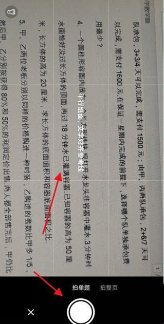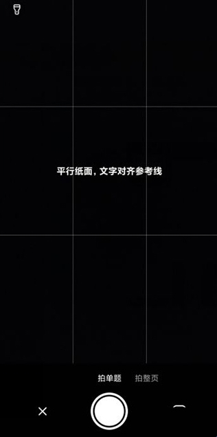 3、用手机摄像头对准题目使参考线平行于纸面文字,点击拍摄按钮。