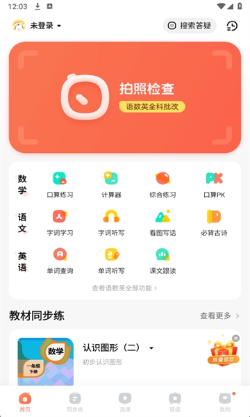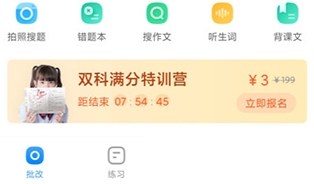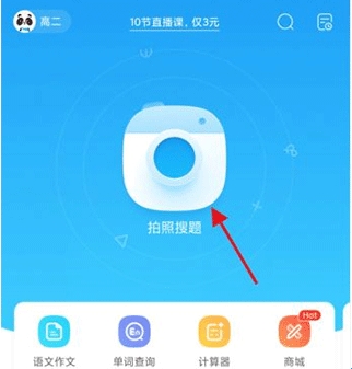 1、在首页点击上方的拍照搜题按钮。