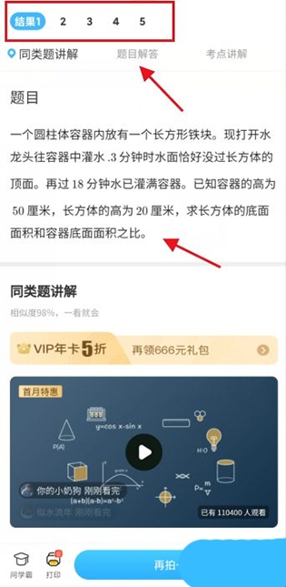 5、这时会出现多种结果,找最类似的或者同题目的点击题目解答。