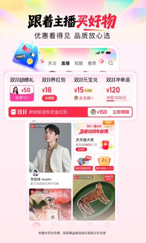 2、【狂撒20亿定金红包】淘宝直播狂撒20亿定金红包,直播间更有超多惊喜福利边看边抢