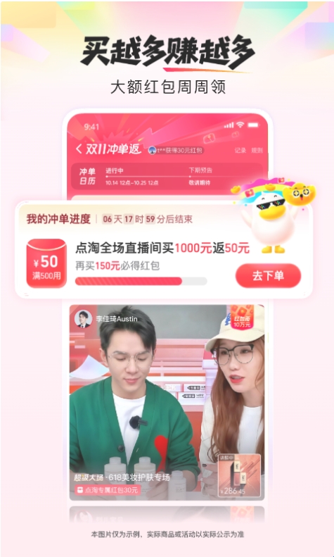 3、【冲单返无门槛红包】下单即参与瓜分亿元点淘无门槛红包,购物还能再省一波买得越多赚得越多
