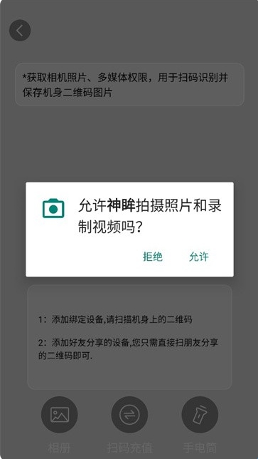 3、进入扫描页面,使用手机摄像头对准设备上的二维码或是添加好友分享的设备,只需直接扫描朋友分享的二维码即可。