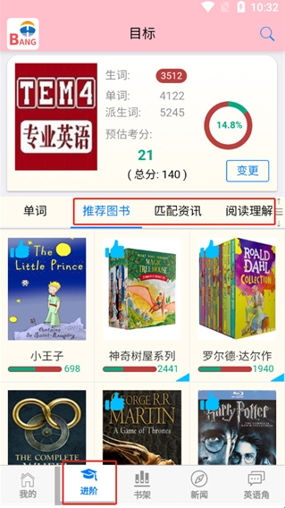 等用户学习到一定程度,用户可以点击进阶选择图书或者资讯来进一步学习;