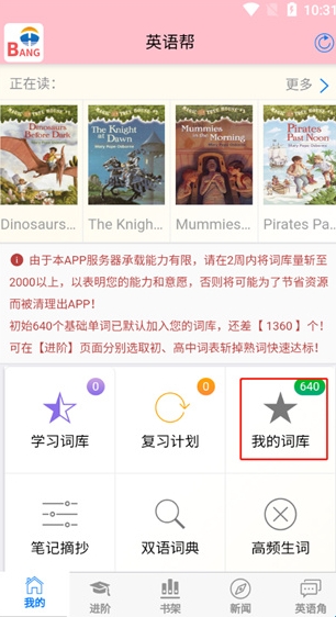 双击打开英语帮软件,点击我的词库来进行学习;