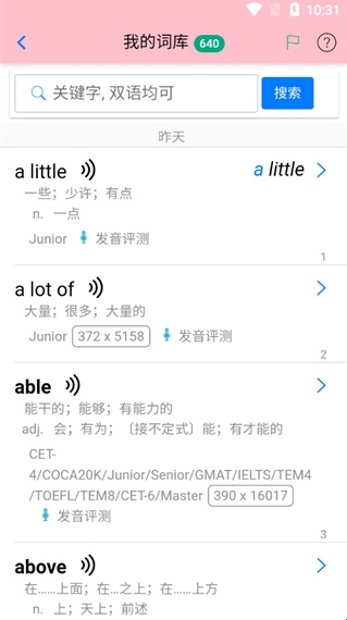 用户点击单词还可以学习单词发音;