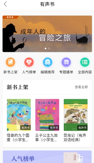 2、这里汇集了平台精选的海量有声读物,挑选你感兴趣的书籍进入详情页;