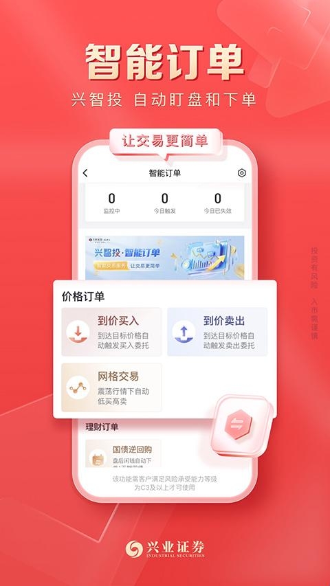 平台在交易流程的设计上注重透明与便捷,订单状态一目了然,并支持自动盯盘和智能下单功能,让用户能够及时响应市场变化,把握交易先机。无论是理财新手还是经验丰富的投资者,都能通过兴业证券优理宝获得流畅、可靠的投资体验。
