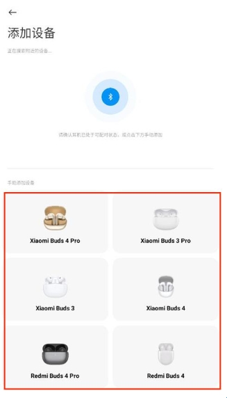这样软件就会自动搜索附近的小米蓝牙耳机,找到自己的耳机连接即可