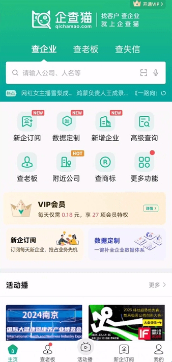 1、企业查询:支持企业名或人名等关键字的智能搜索,可一键查企业、查老板。