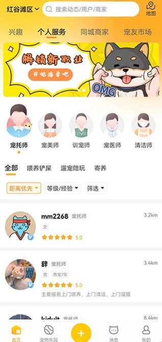 2、有专业的服务者、优质的商家提供各种养宠服务供宠友挑选;