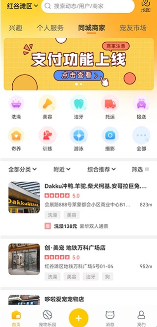 3、【同城商家】汇集地域所有宠物相关门店,平台筛选优质商家,为爱宠的衣食住用行医全面把关,知你所想,知它所需,为它的每个需求保驾护航。
