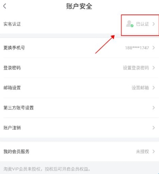 2、在账号安全界面中完成实名认证。