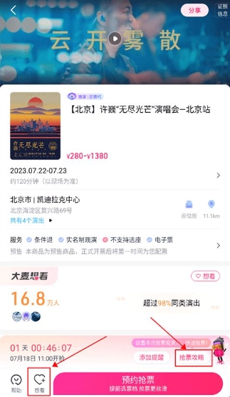 4、在抢票界面中点击抢票攻略。