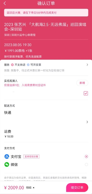 注意:只有转到支付宝或微信支付界面时,才算抢到票,大家不要在确认订单界面时就以为抢到票了哦,还需要一直点提交订单才行。