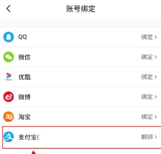 3、在账号绑定界面中选择绑定微信或支付宝即可,其他的全部解绑。淘宝一定要解绑否则在抢票过程中会弹出淘宝验证界面。