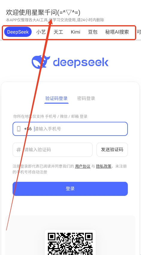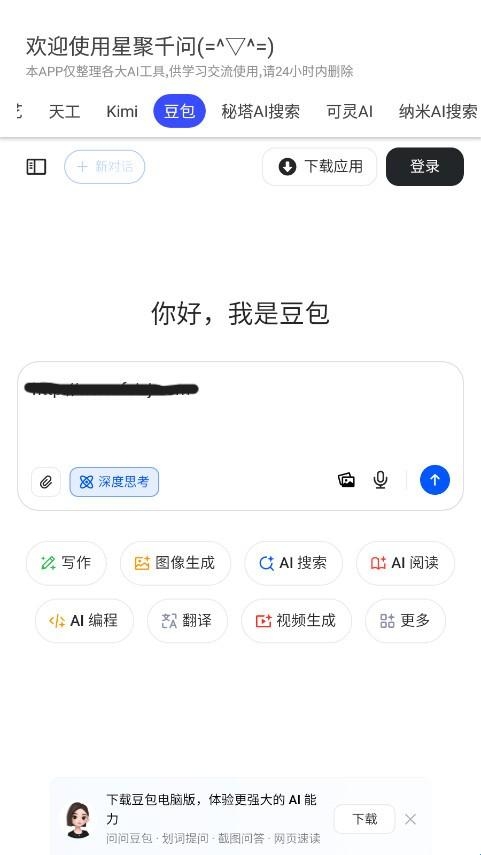1、星聚千问ai聚合搜索神器聚合deepseek、小艺AI、天工AI、kimchat以及豆包等主流ai工具。