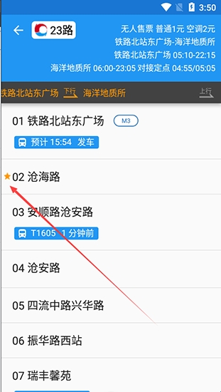 2.当站台名称前出现了一个黄色星星则代表收藏成功