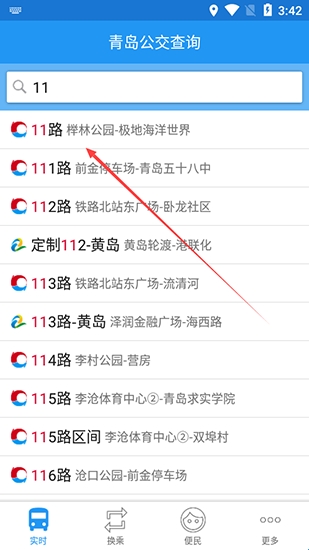 2.在弹出的搜索结果中点击进入,这里以11路为例
