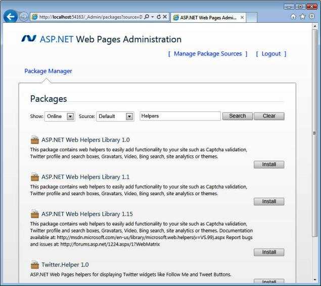 WebMatrix 已经包含了一些帮助器,您还可以手动安装其他的帮助器。